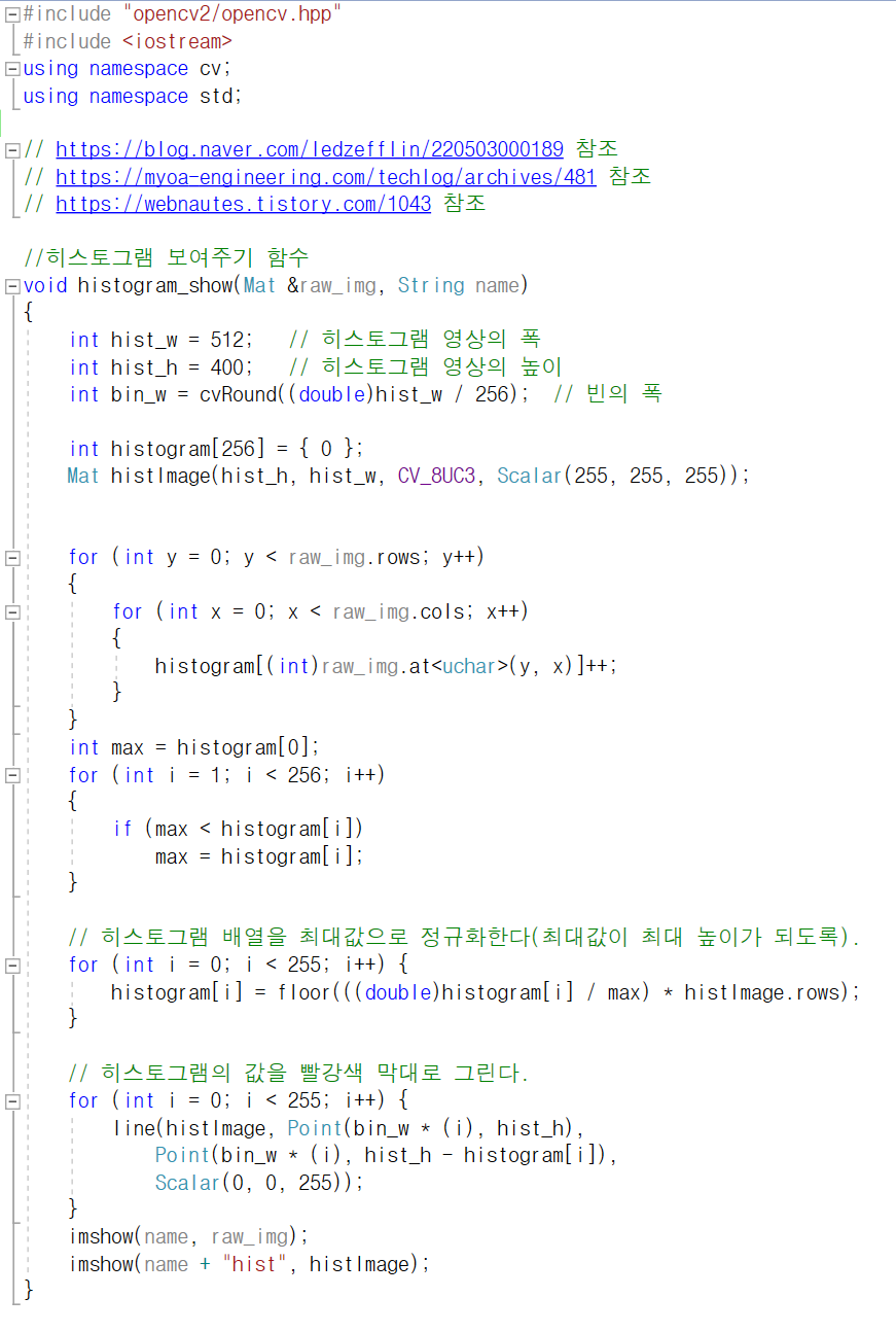 Histogram Equalization of Grayscale or Color Image Histogram 히스토그램은 이미지의 강도 분포이...